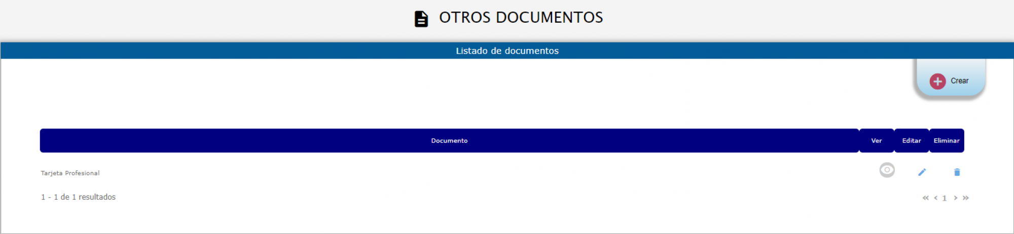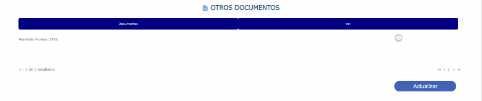 La información se ve reflejada en la tabla correspondiente a Otros Documentos desde la cual se podrá: