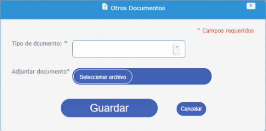 Para registrar y/o modificar la información correspondiente a documentos como: Tarjeta Profesional, Pase, Licencia de conducción, etc., se debe acceder desde la sección “Otros Documentos” del menú lateral o desde el icono del tablero del control.