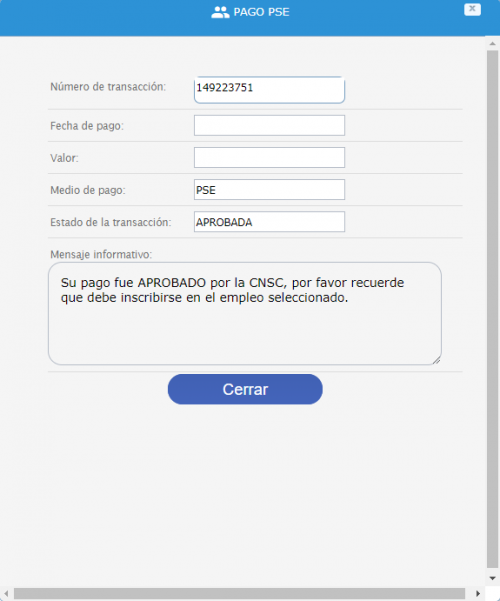 Una vez PSE confirme el pago informa a la Comisión Nacional del Servicio Civil - CNS.
