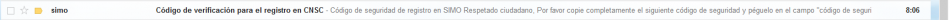 Dentro del cuerpo del mensaje encontrará el código de seguridad, el cual debe copiar para proseguir con el proceso de registro.