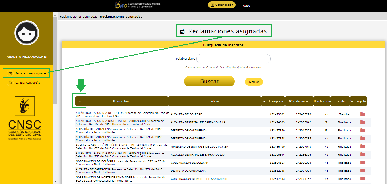 MANUAL DE USUARIO ANALISTA RECLAMACIONES OPERADOR PROCESO DE SELECCIÓN