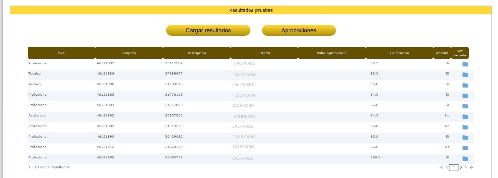 MANUAL DE USUARIO Cargue,aprobación y Publicación de Resultado de Pruebas